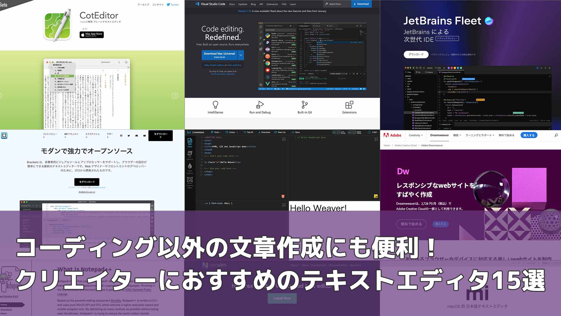 そこで、本記事ではノンエンジニアのクリエイターに向けて、コーディング以外の文章作成機能なども含めたおすすめのテキストエディタ15選を紹介します。
