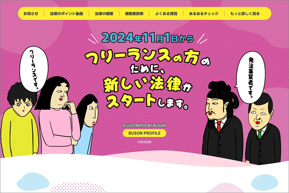 公正取引委員会が公開している「フリーランス・事業者間取引適正化等法の特設サイト