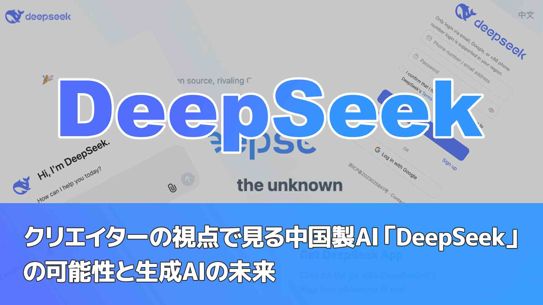そこで、今回は今後も大きく注目されると思われる「DeepSeek」について解説します。なお、本記事は「DeepSeek」の利用をおすすめする記事ではありません。「DeepSeek」という社会的に大きな影響を与えている生成AIについての情報をクリエイター視点で分析する記事となります。実際に利用してみるか否かは、個々の状況によって異なるかと思いますので、最新の生成AI事情をキャッチアップする記事としてご覧ください。