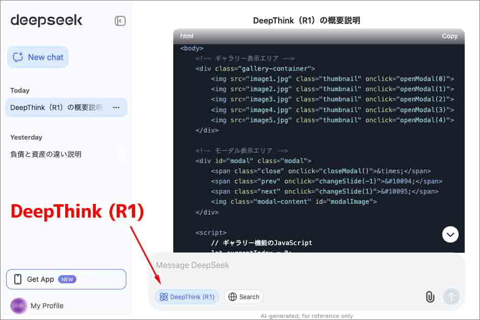 また、DeepSeekの登場は、生成AIのローカライズという視点も提供してくれたように思います。日本は生成AI開発で周回遅れだといった言説をよく耳にしますが、生成AIを広く普及する段階になってくると重要視されるのは性能面だけではなくなってきます。どんなに性能が良くてもUIが残念な生成AIは、使い勝手の面で優れているとは言えません。DeepSeekには、そうしたUI面にも課題があるように感じました。